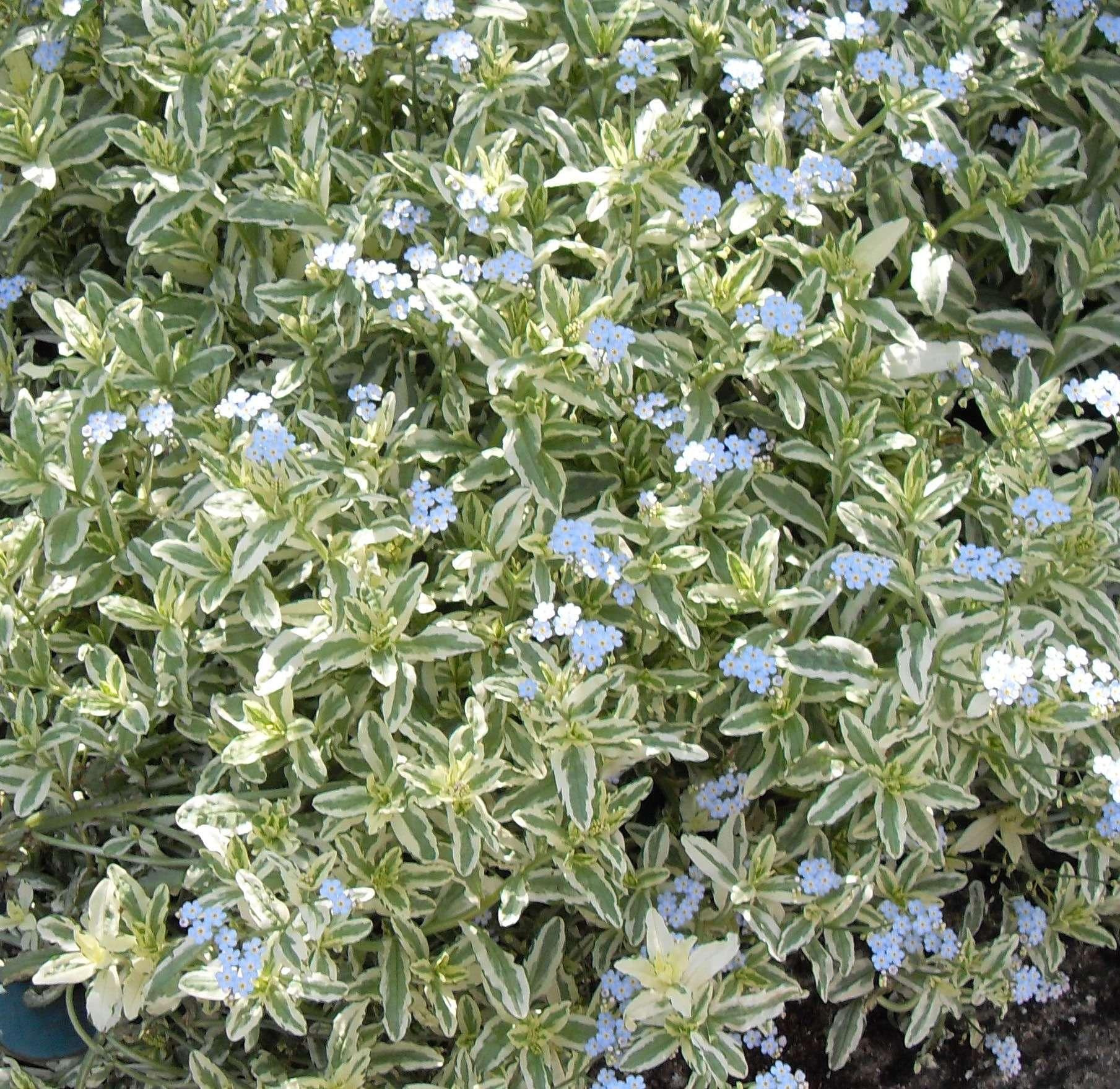 - Myosotis scorpiodes variegata produces clusters of small, sky-blue flowers that bloom in spring, bringing a gentle burst of color to your garden.
