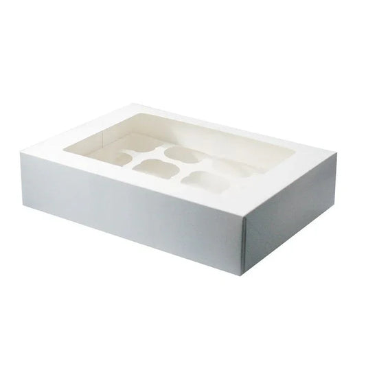 White Cupcake/Muffin Box with Transparent Lid - Available in 6 & 12 Capacity