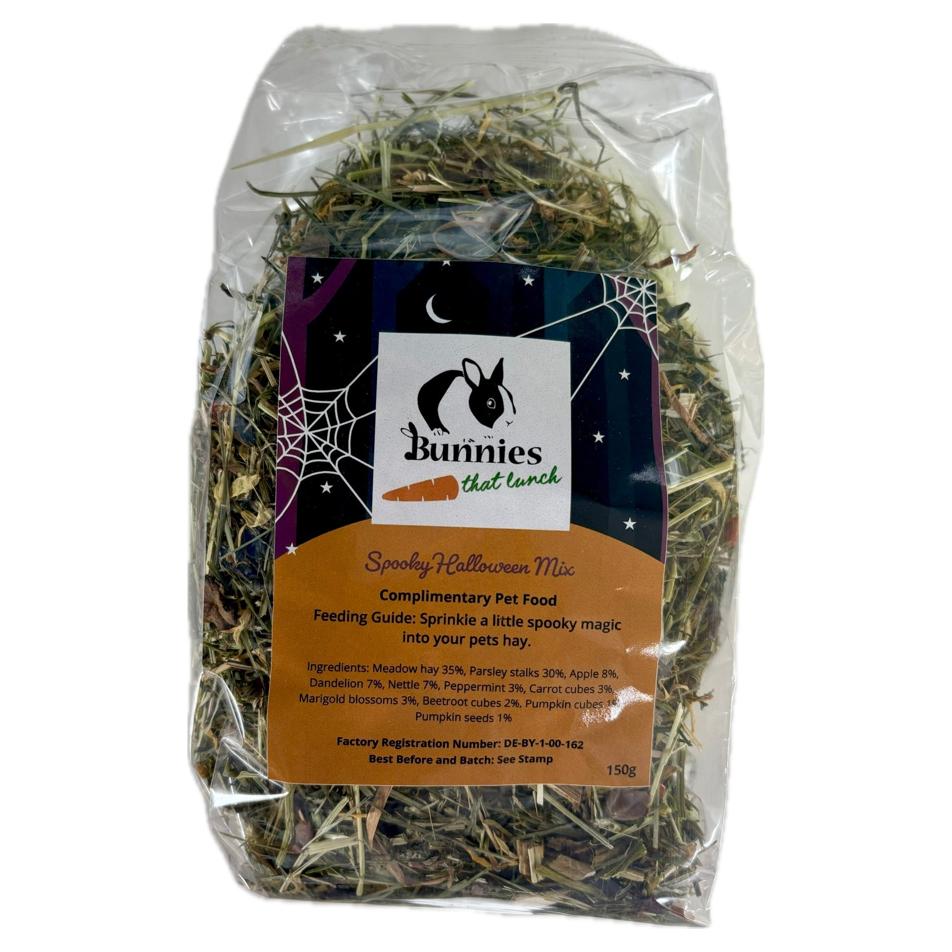 Sprinkle a little spooky magic onto your pets hay with the Bunnies That Lunch Spooky Forage Mix!