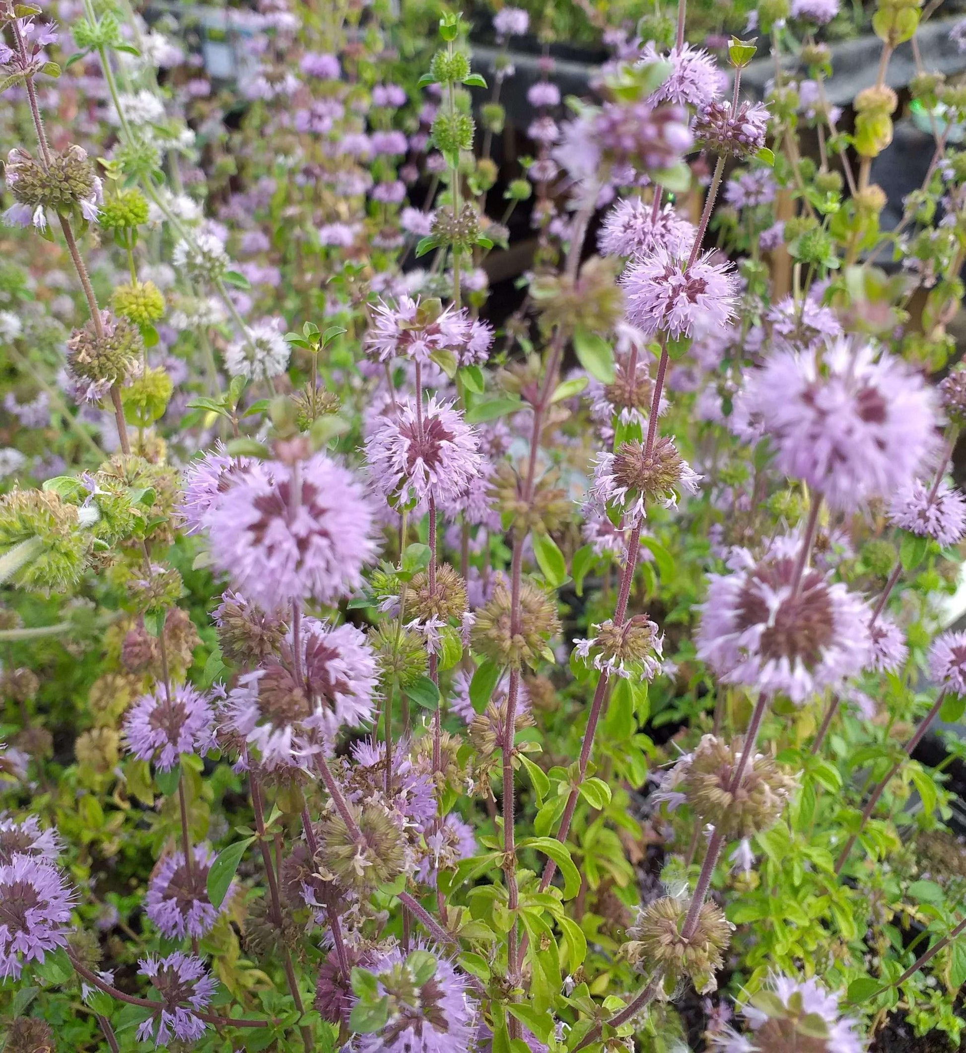 In late spring to summer, Pennyroyal produces small, tubular flowers that are pale pink to purple in colour. These flowers are arranged in dense, rounded clusters at the tips of the stems. While the flowers are not particularly large or showy, they are attractive to pollinators, including bees and butterflies. The strong aromatic scent of the plant is a distinguishing feature, often used to repel insects like mosquitoes.