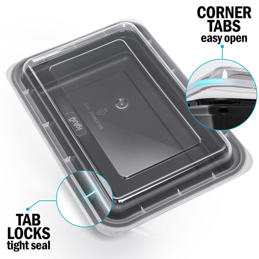 2-Compartment Reusable Containers with Airtight Lids - 887ml